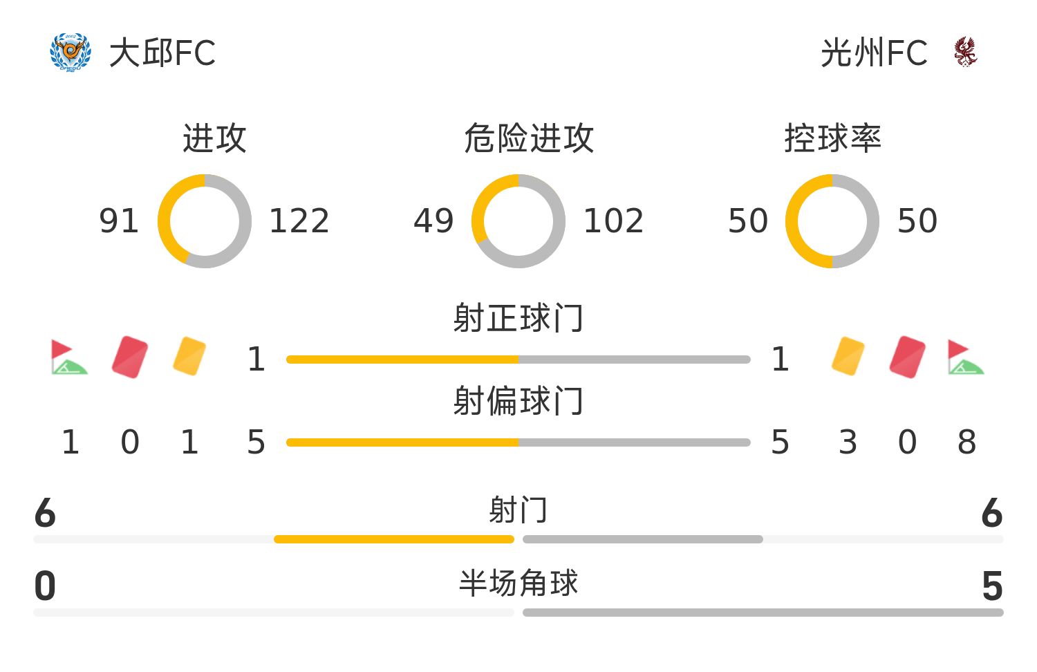 光州FC首发阵容:1-金耿民(56’12-卢熙东);22-金汉吉;6-安泳奎(75’27-权成尹);5-卞俊洙;20-进时宇;17-雷斯;80-朱世钟(65’8-李刚玹);16-郑支训(33’77-吴厚性);88-文敏瑞(75’40-申昶武);7-阿萨尼;18-朴仁赫(65’11-蒂格劳)